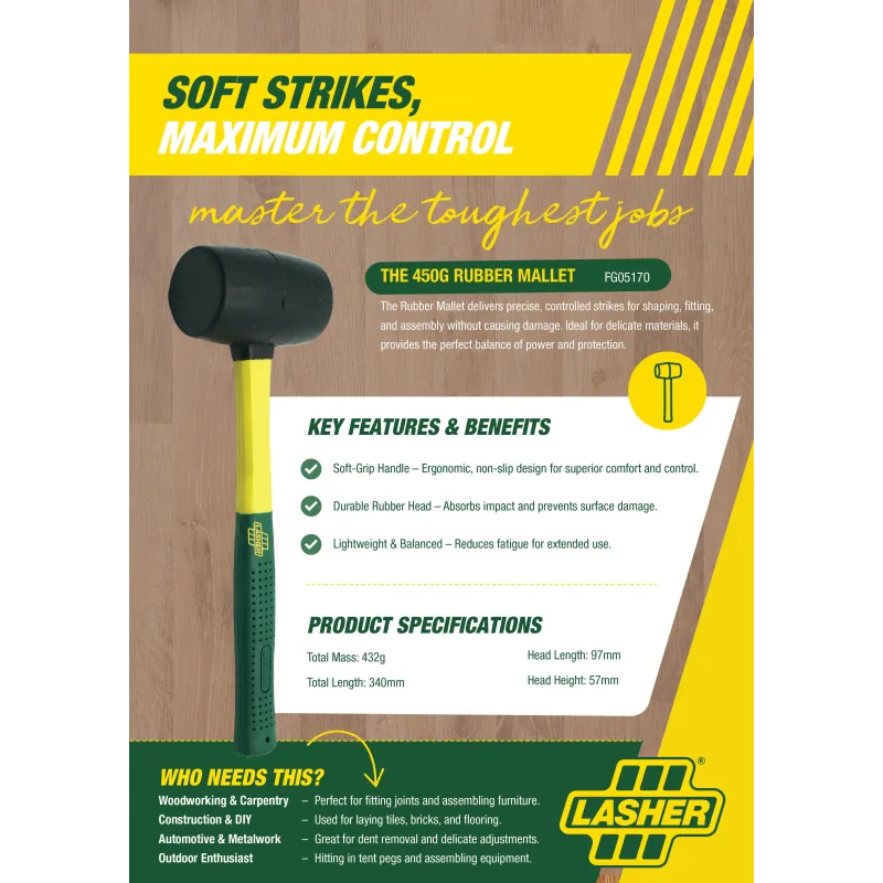 A Versatile Hammer Used For Striking Material Like Wood, Metal With Out Damaging Material. Soft Grip Handle; 340Mm; 450G Rubber Head.