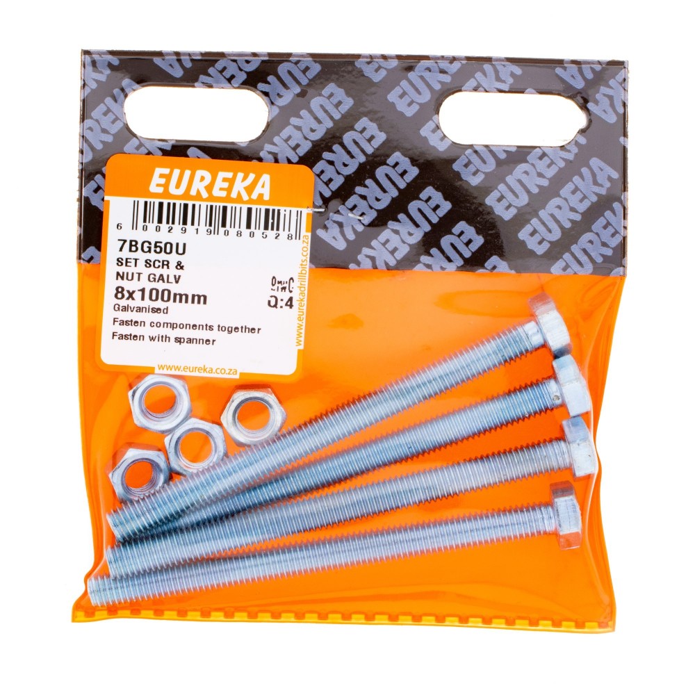 Eureka Set Screw& Nut Galvanised 8X100mm Quantity:4