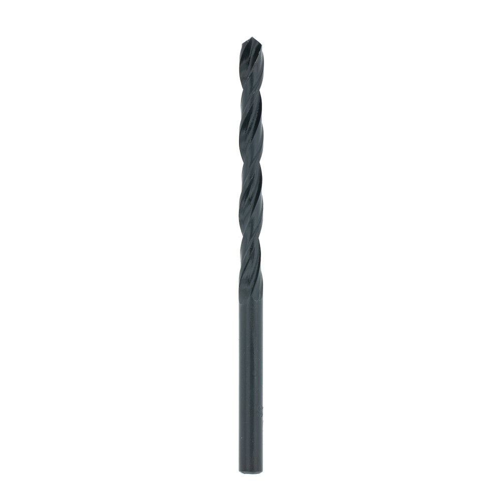 The HSS Black bit is a good all-rounder when it comes to drilling steel. The black oxide coating provides heat resistance and lubricity as well as corrosion resistance. The 118 degrees cutting point makes it a general purpose bit for drilling into wood, plastics, and milder steel types. Not ideal to be used on stainless steel or harder metal types.