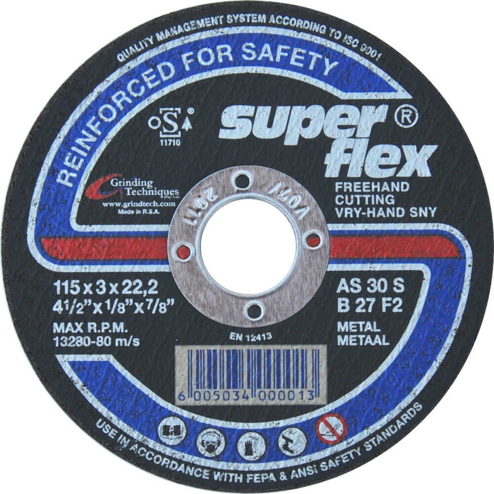 CAN BE USED TO CUT METAL PRODUCTS, MILD STEEL AND CONSTRUCTION STEEL. OPERATING SPEED 80 METERS PER SECOND.